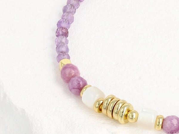 Bransoleta z ametystem nie tylko pięknie zdobi nadgarstek, ale też działa jako talizman wspierający równowagę emocjonalną, koncentrację i rozwój duchowy.