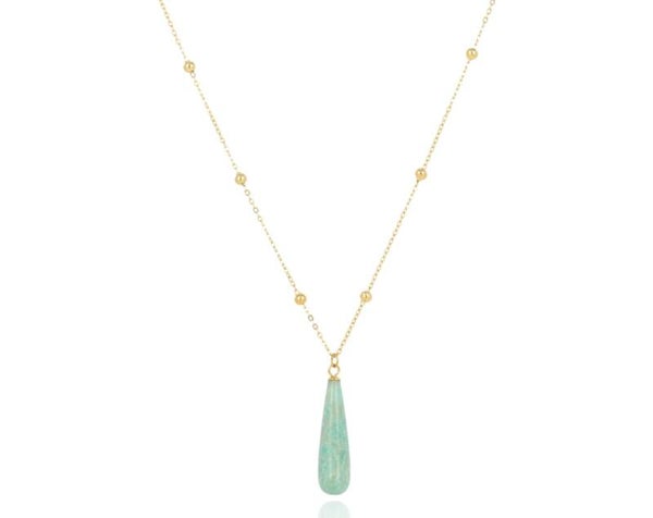 Połącz elegancję z energetyczną mocą natury dzięki naszyjnikowi pozłacanemu ze stali szlachetnej 316L, ozdobionemu koralikami i zawieszką w kształcie sopla z awenturynem. To wyjątkowy talizman, który przyciąga pozytywne wibracje, wspiera równowagę emocjonalną i chroni aurę.