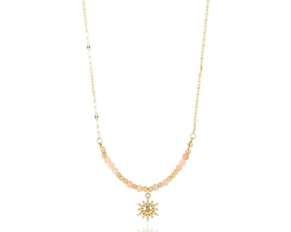 Rozświetl swoją aurę i przyciągnij pozytywne wibracje dzięki naszyjnikowi z koralikami kamienia słonecznego i zawieszką w kształcie słońca. To elegancka biżuteria, która działa także jako talizman energetyczny, wspierający radość życia, pewność siebie i ochronę aurę.